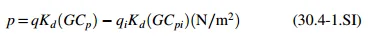 屋顶p=29章垂直力/屋顶投影面积(向上吸力)