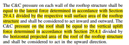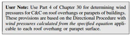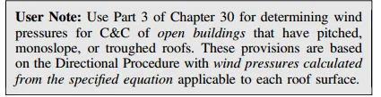 30.8节屋面设备基础适用屋面上的小型结构(HVAC机组、设备基础等),不通过30章的围护计算,而是选取29章的计算值,分配到围护表面。
