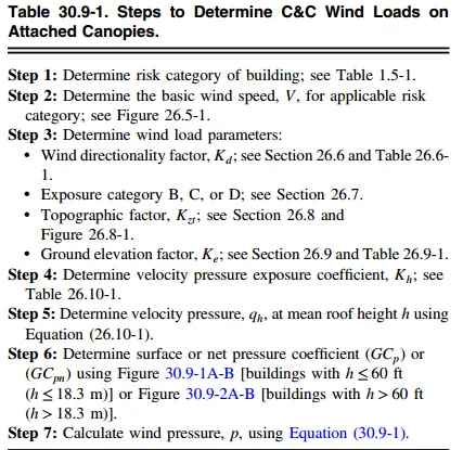 从step6可以看出,在计算雨棚的时候,要计算上下两面的压力差,所以公式里的GCp其实应该是GCpn即净压力系数,要包含上下表面的叠加: