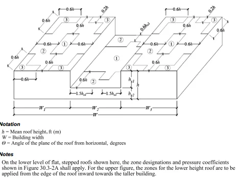阶梯式屋顶(高低跨):Stepped roofs; see Figure 30.3-3 | |