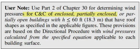 30.8节屋面设备基础适用屋面上的小型结构(HVAC机组、设备基础等),不通过30章的围护计算,而是选取29章的计算值,分配到围护表面。