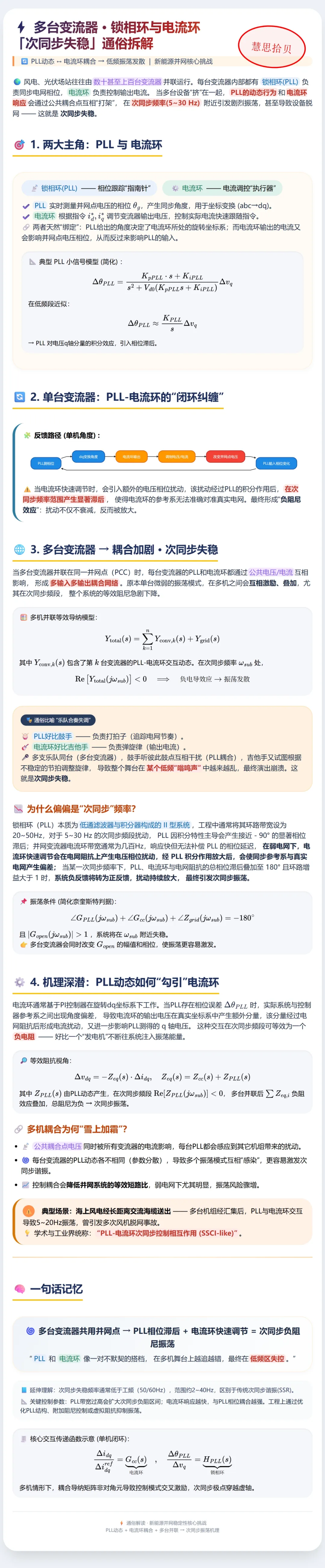 >新型电力系统学习笔记054:多台变流器 · 锁相环与电流环“次同步失稳”通俗拆解