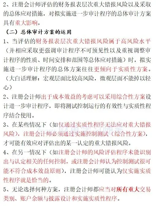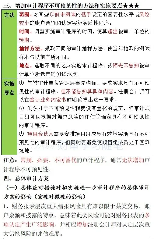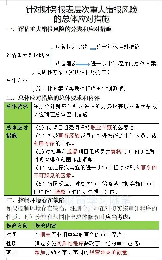 审计学习笔记——针对财务报表层次重大错报风险的总体应对措施