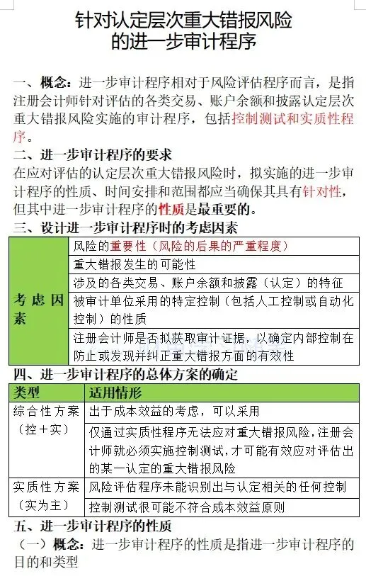 审计学习笔记——针对认定层次重大错报风险的进一步审计程序