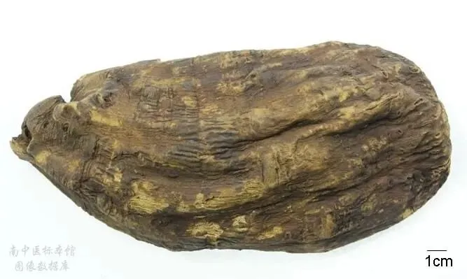 “茯苓”——多孔菌科真菌茯苓的菌核。