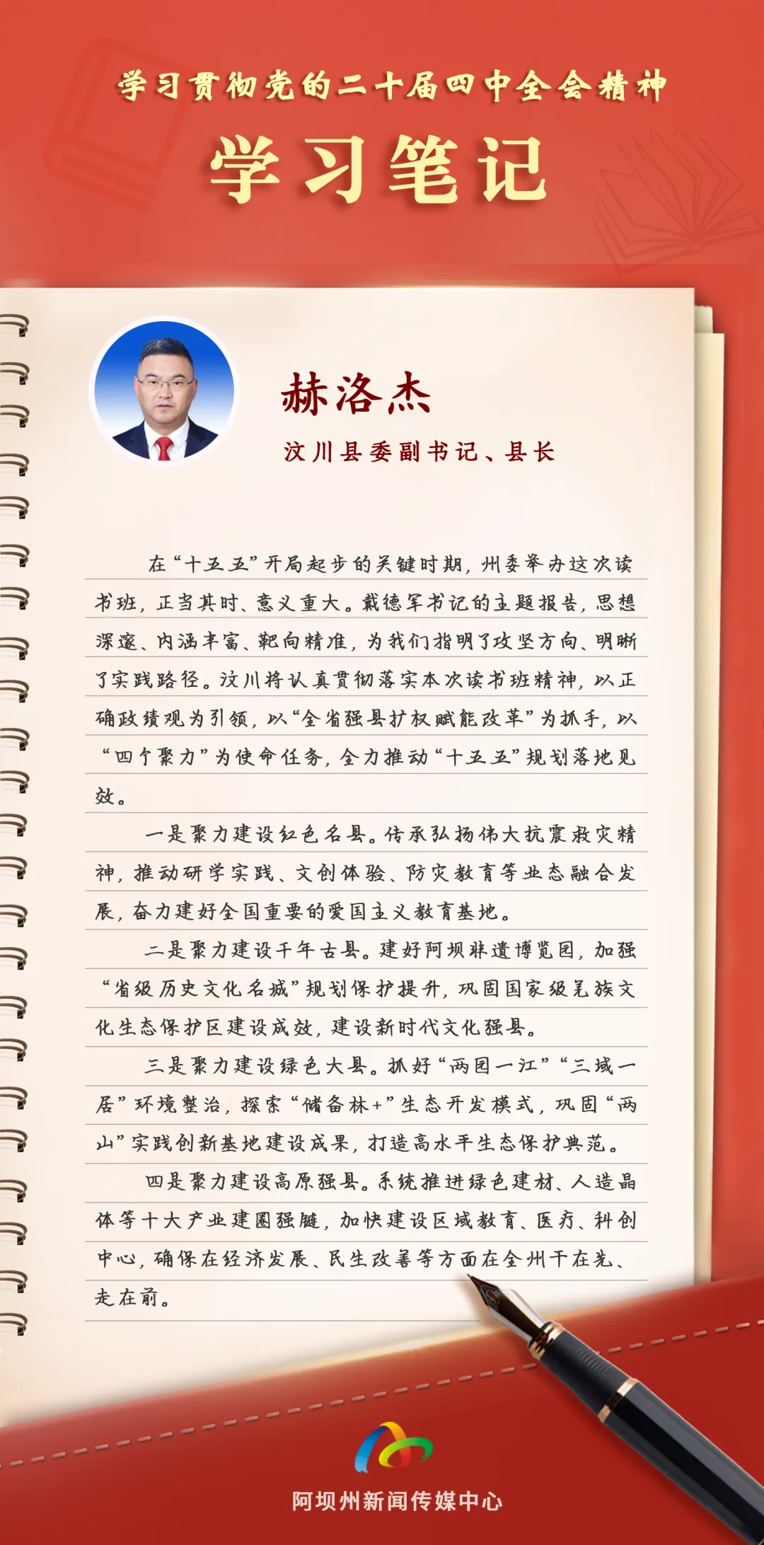 在“十五五”开局起步的关键时期,州委举办这次读书班,正当其时、意义重大。戴德军书记的主题报告,思想深邃、肉涵丰富、靶向精准,为我们指明了攻坚方向、明晰了实践路径。汶川将认真贯彻落实本次读书班精神,以正确政绩观为引领,以“全省强县扩权赋能改革”为抓手,以“四个聚力”为使命任务,全力推动“十五五”规划落地见效。