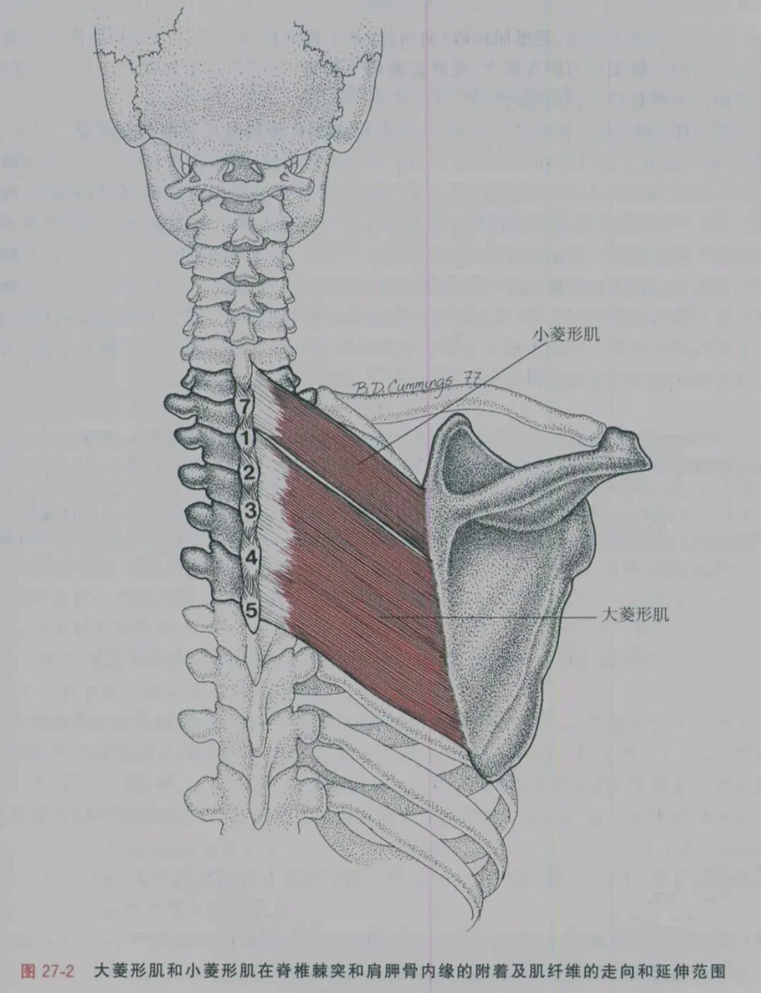 疼痛模式与肩胛提肌有些相似,但不含颈部成分,也不会限制颈转动。尚未发现关于引传痛向上臂延伸的报告。