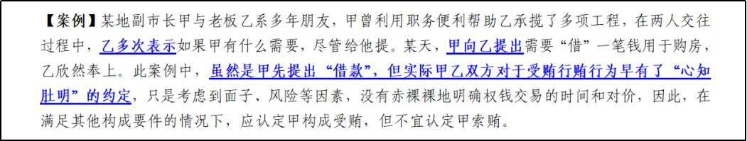 【注意】实践中,除第一个标准外,也应重视第二、第三个标准,特别要注意收集一些能够证明是否索要的客观证据或间接证据,以此综合分析判断。对于双方当事人都有行受贿的意思,只不过是由国家工作人员先提出具体受贿标的、数额的,或者虽然由国家工作人员主动提出,但行贿一方欣然应允,内心没有不愿意的,一般不宜认定为索贿。