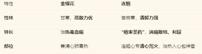 (2)经典配伍:金银花+连翘 → 增强清热解毒、疏散风热之力(银翘散)。