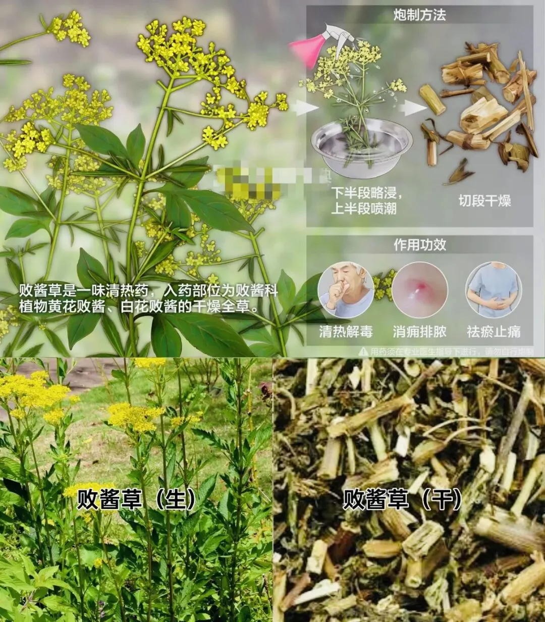 (4)配伍:败酱草配薏苡仁 → 治肠痈腹痛(薏苡附子败酱散)。