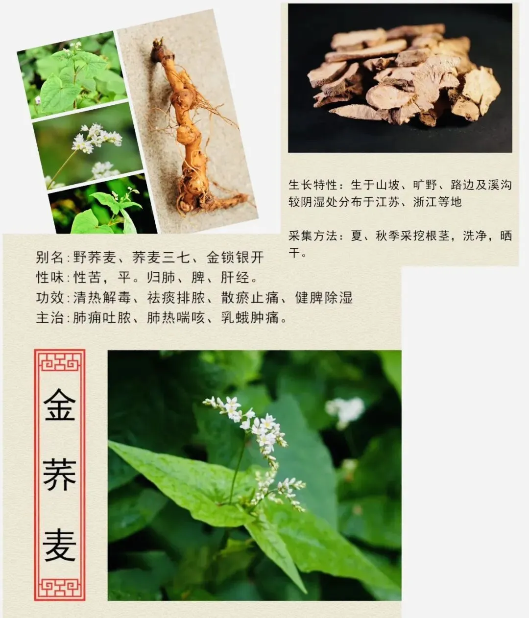 金荞麦凉归肺经,肺痈痰热咳嗽清。