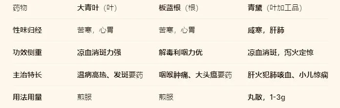凉血消斑大青叶,利咽板蓝肝黛劫。