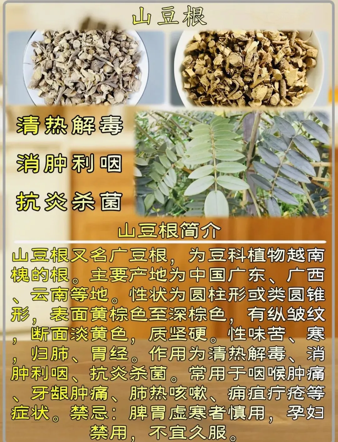 山豆根苦寒有毒,咽喉肿痛力最猛。