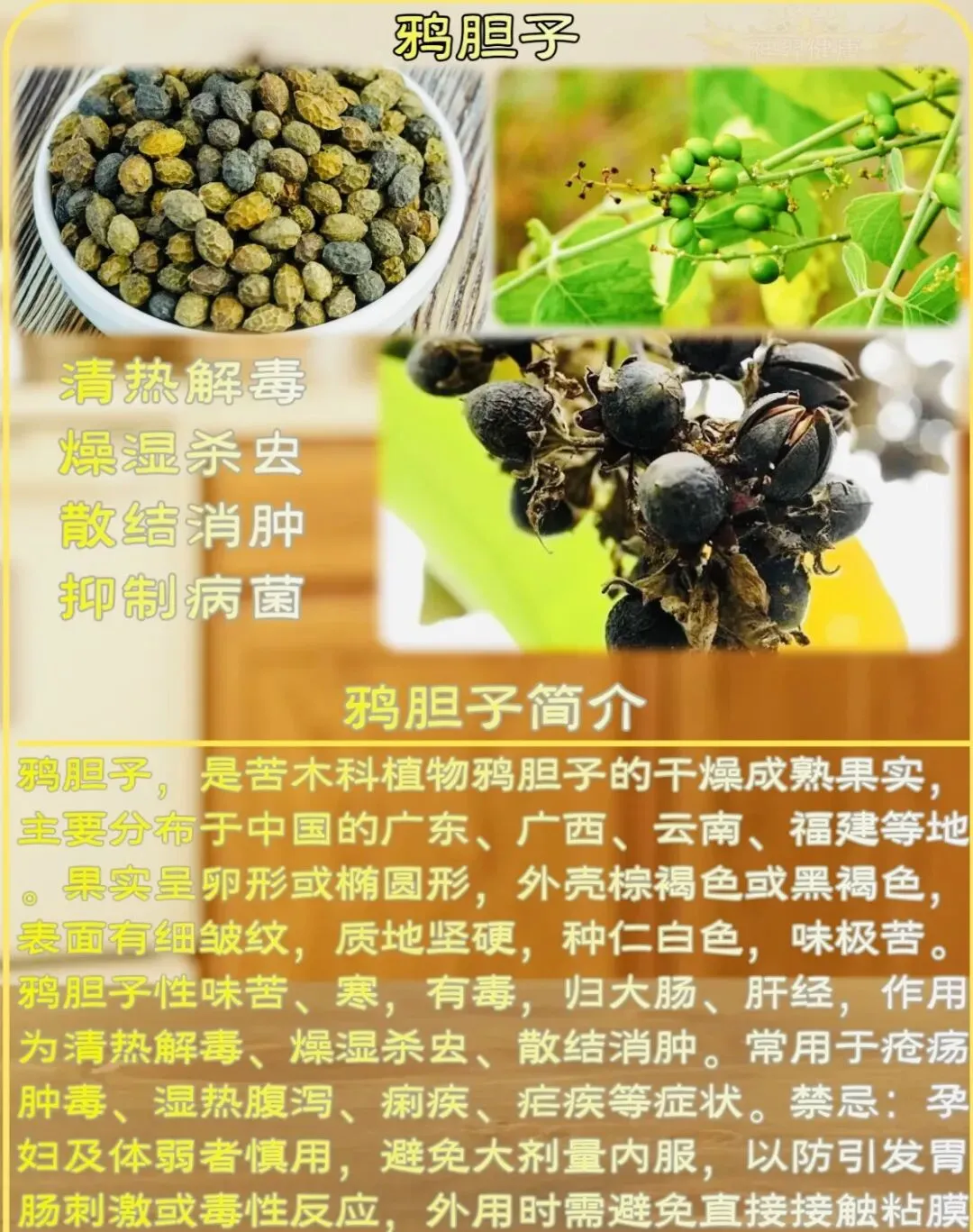 血痢翁苋鸦胆包,鸦胆蚀疣外用高。