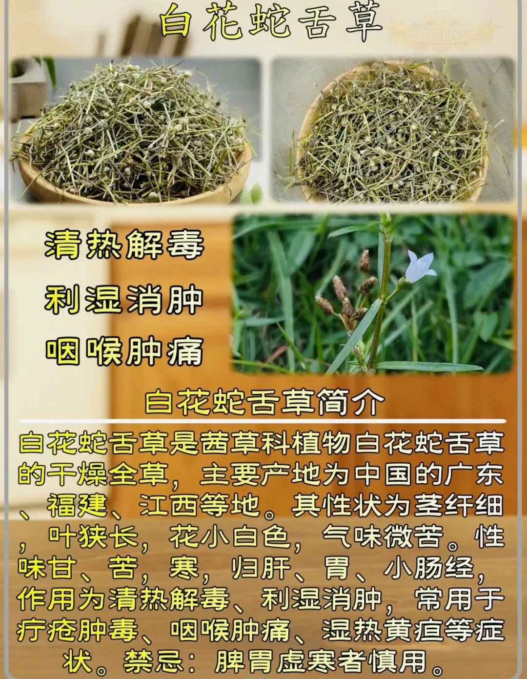 土苓解梅忌茶饮,蛇舌利湿抗瘤新。