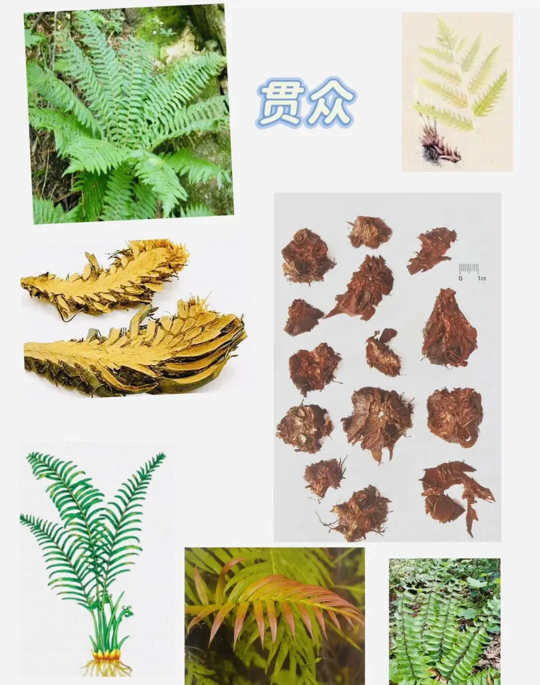 (6)贯众:驱虫、清热解毒生用,炒碳止血。
