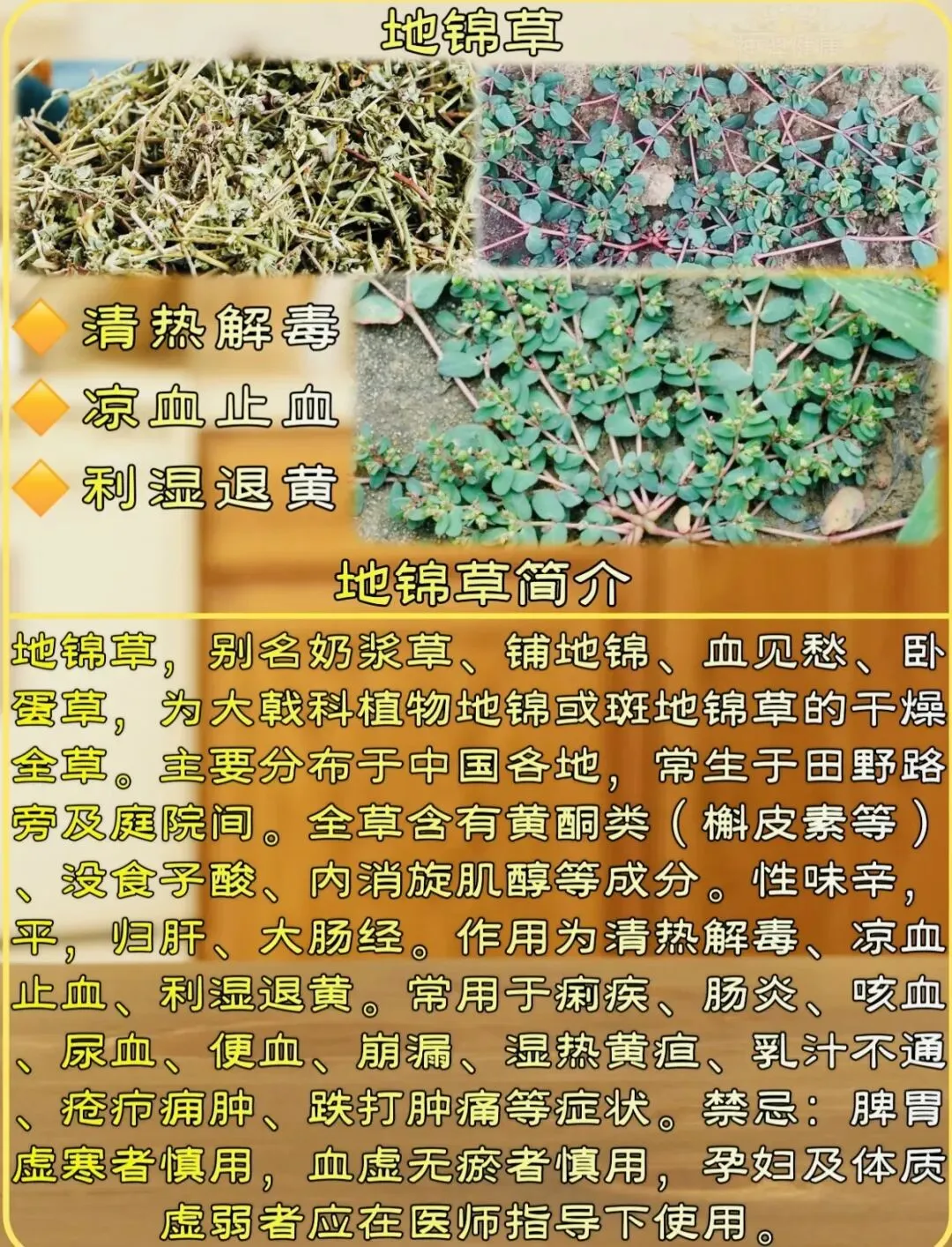 (1)特点:辛平。清热解毒,凉血止血,利湿退黄。治痢疾、多种出血、疮痈、黄疸。
