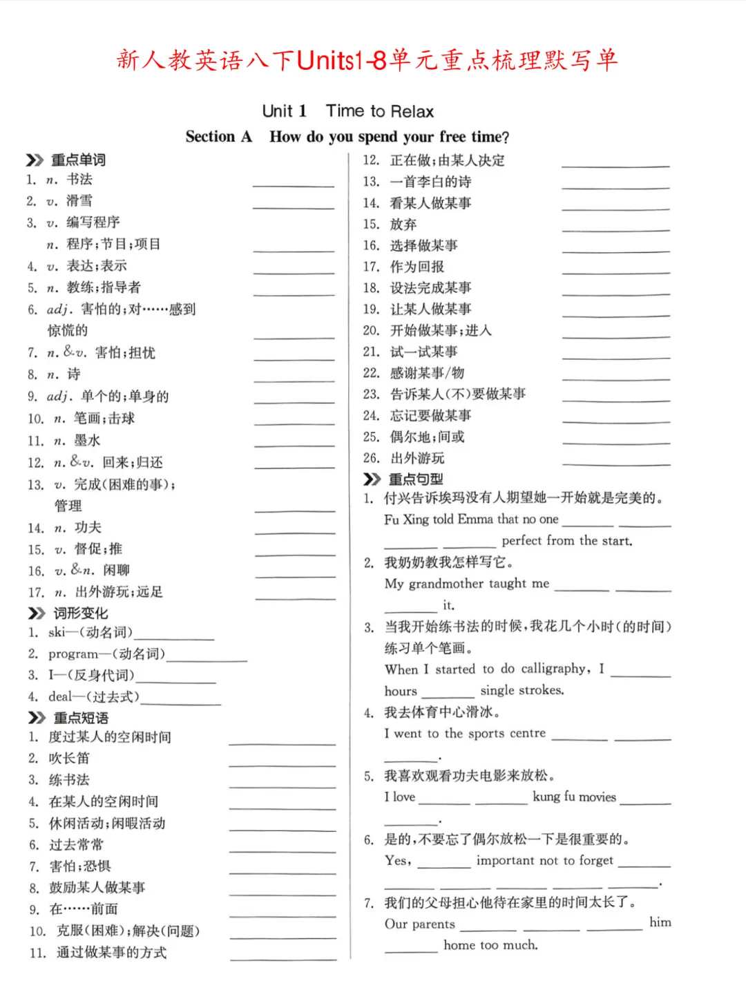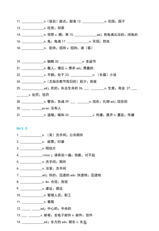(单词默写表)