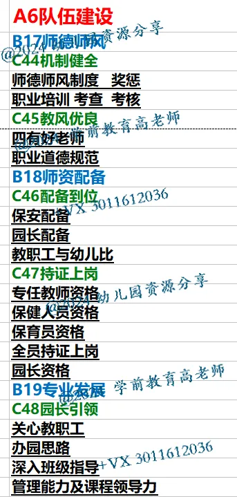 本套资料主要适应于2024幼儿园示范园GZ新版,分A1办园方向—A2条件保障—A3教育过程—A4卫生保健—A5儿童发展—A6队伍建设—A7办园效益,共七大版块。+VX3011612036 观测点54个,文件数量1013个;具有很强的学习参考作用。