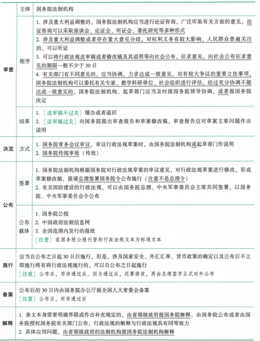 (3)向社会公布:可以将送审稿及其说明等向社会公布征求意见,期限一般不少于30日。(注意:起草阶段为“应当”,审查阶段为“可以”)