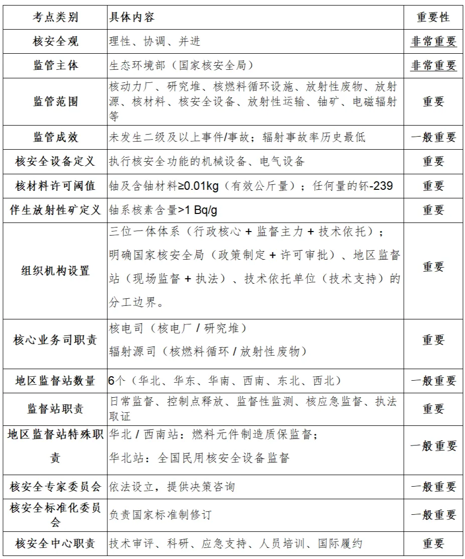 5.监管主体:生态环境部(国家核安全局)是核与辐射安全监督管理的主管部门。