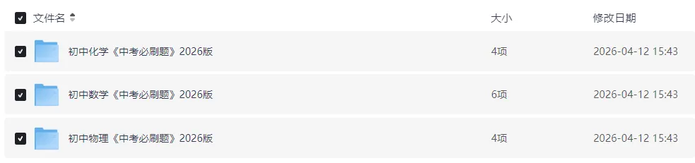 免费领初中学习资料下载!《中考必刷题》2026版,数学、物理、化学优选真题!七、八、九年级!