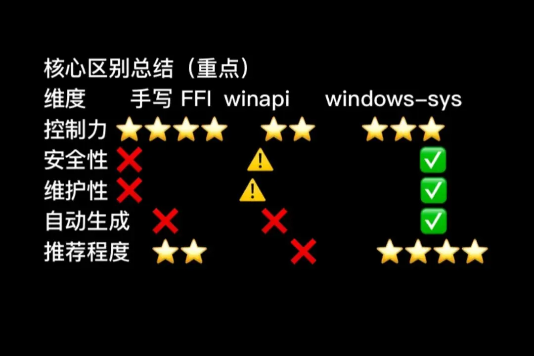 windows-sys→纯 FFI(底层)windows→带封装(更高级)