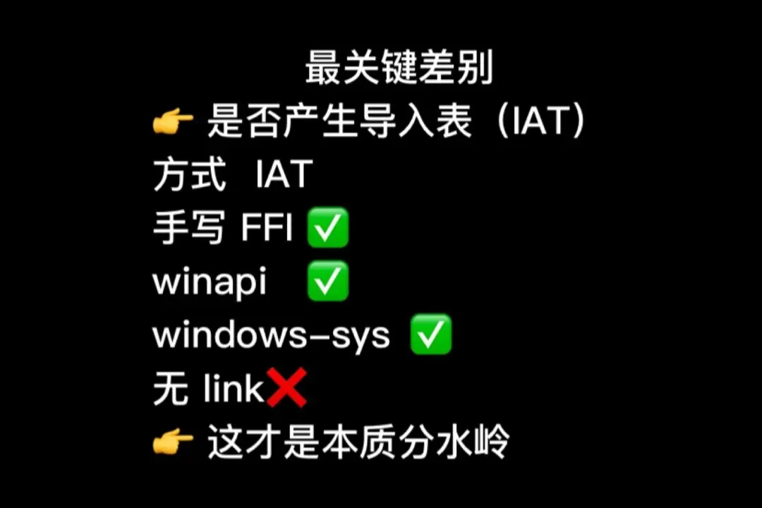 不让编译器帮你导入 DLL,而是运行时自己解析函数地址