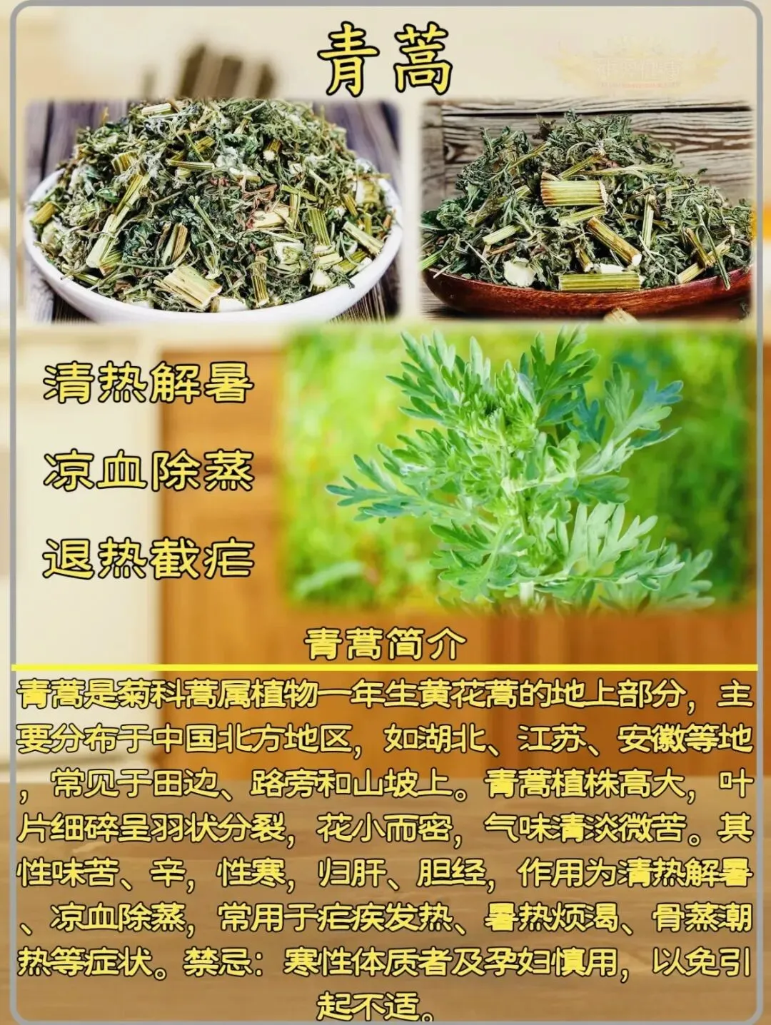 (3)功效:清虚热,除骨蒸,解暑热,截疟,退黄。