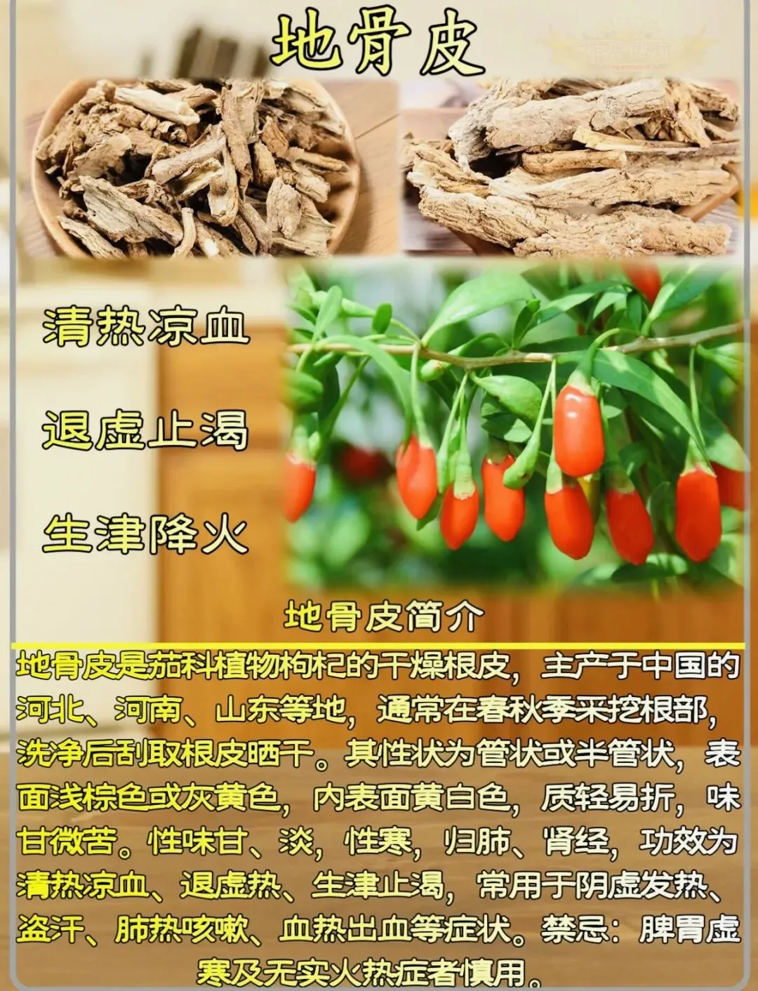 地骨清肺火,凉血消渴除;