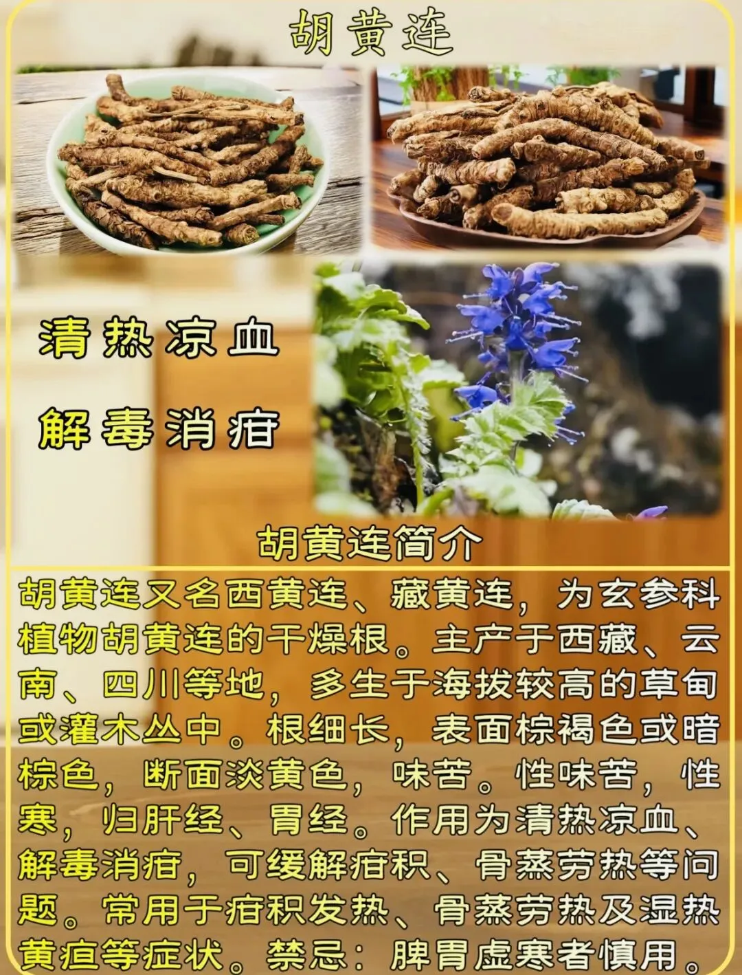(2)胡黄连 vs 黄连:都苦寒。胡黄连偏退虚热、除疳热;黄连偏清实热、燥湿解毒。