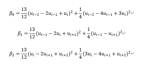 变得非常小。反之,对于最光滑的模板,其权重会接近于1。这样,在间断附近,格式就自动“退化”为使用最光滑的那个低阶模板(类似于ENO的单选);在完全光滑的区域,所有