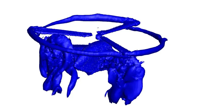 图16X3构型复合式高速直升机悬停状态流场中全机状态等值涡量图