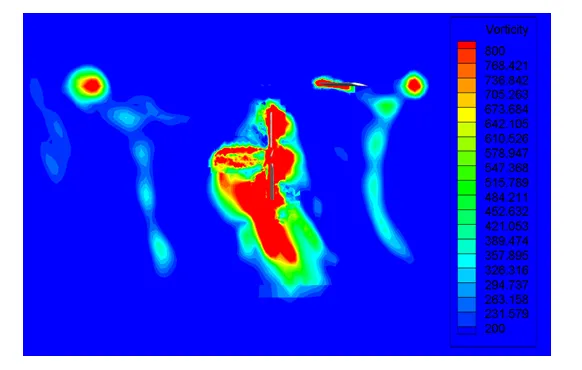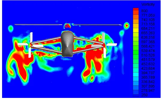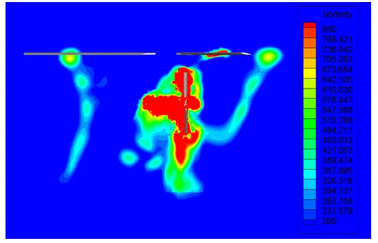 图17X3构型复合式高速直升机悬停状态流场中旋翼中心横向截面处涡量云图