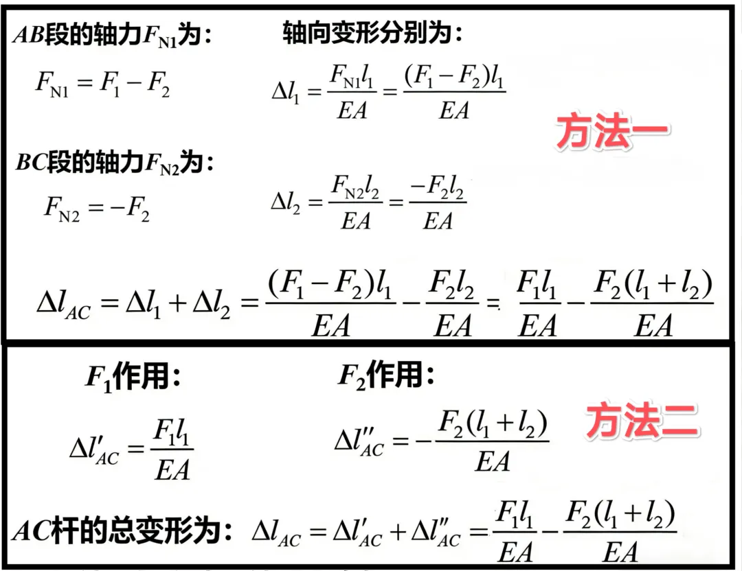 分析轴向拉压变形的基础是胡克定律。在此基础上建立的几何法、叠加法与能量法,是分析变形的重要方法。