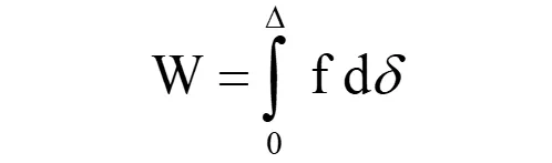 在加载过程中,当载荷f增加微量df时,位移δ相应增长dδ,如图(a),这时,载荷f所作之功为fdδ。因此,在整个加载过程中,载荷所作之总功为: