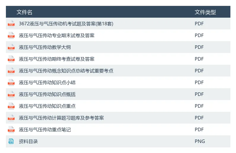本次为大家分享的是【液压与气压传动】的日常学习或期末复习备考的资料,学习资料包包含【学习笔记+知识点总结+重点梳理+计算题含答案+题库含答案+知识点小结+期末复习资料】,复习资料可用来准备期末的考试了,考试的重点的无非就是这些,抓住“重点”复习,期末考试轻松 过!过!过!