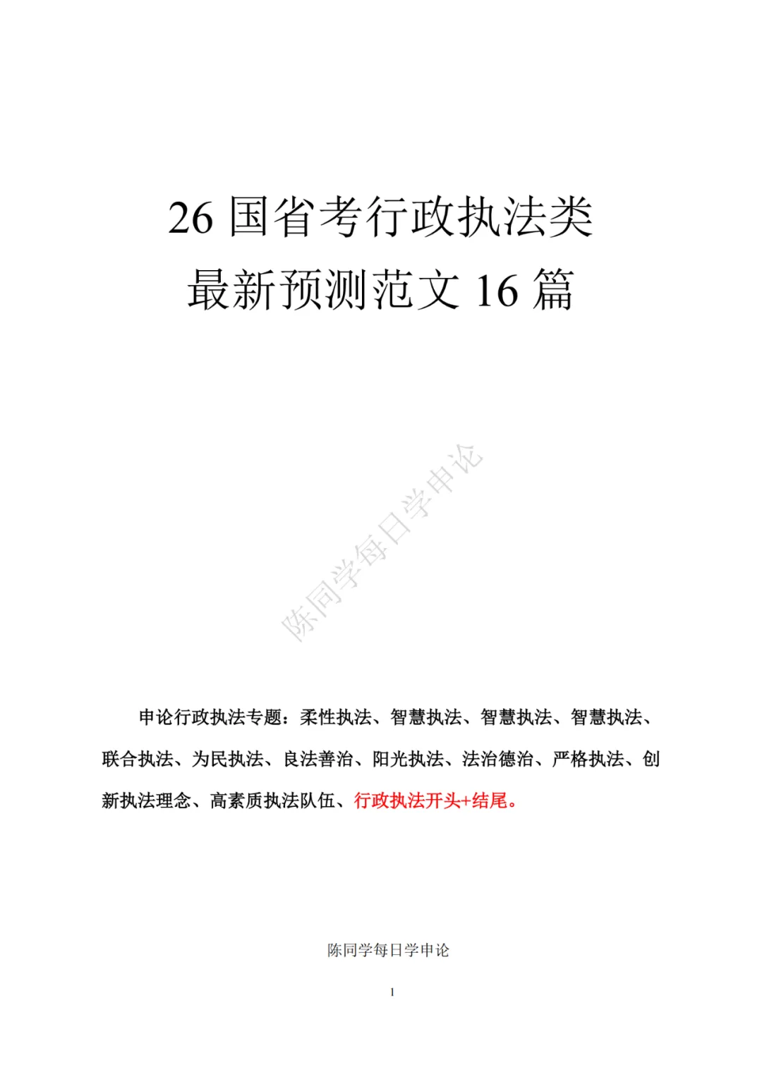 2、申论大作文预测押题+26国省考行政执法类最新预测大作文+20大主题框架+写作素材+必背金句