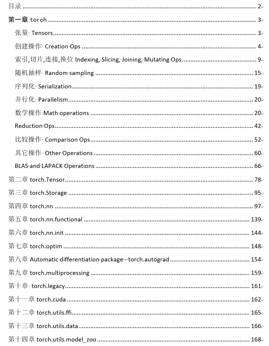 所以,我们团队花费了几个月,整理了这一份目前最全的Pytorch常用函数手册,内含超200个常用函数,是居家旅行、深度学习、发表论文必备工具。本手册中分为14章,从最基础的创建张量开始,逐步加深,涵盖小伙伴们将会所有常用的函数。为了方便小伙伴们的查阅,我们特意推出了带有书签版的PDF供大家下载。添加小助手,并回复 “Pytorch“,即可获取pdf电子版资源。除此之外,如果有粉丝想学习视频版本的学习资料,我也为大家准备了一份,给大家学习。(不收费)课程通过讲解和实战操作,带你从零开始训练网络,做到独立搭建和设计卷积神经网络(包括主流分类和检测网络),并进行神经网络的训练和推理(涉及PyTorch、Tensorflow、Caffe、Mxnet等多个主流框架),通过实战让你掌握各种深度学习开源框架。这份资料不一一展开,截取框架学习部分目录大家感受下。深度学习与神经网络