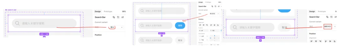 把默认的名称改为“样式”。选中第一个组命名改为“默认”;第二个组命名改为“焦点状态”;第三个组命名改为“搜索状态”。