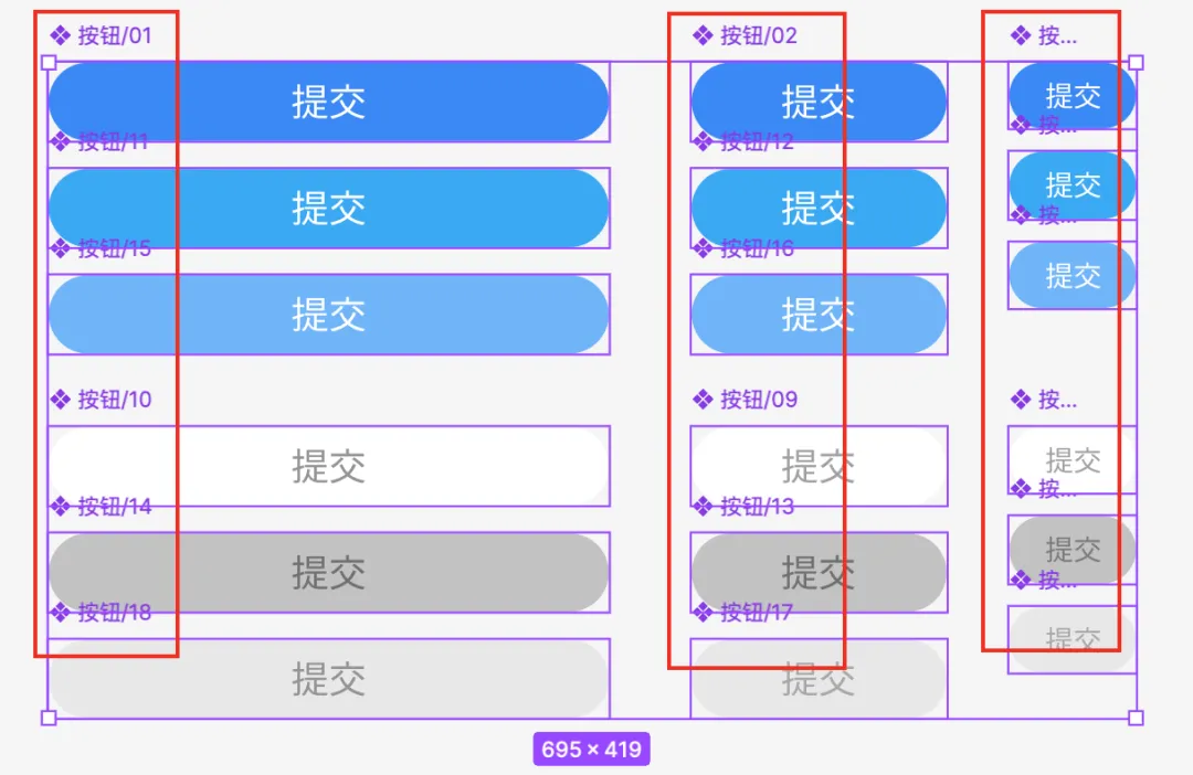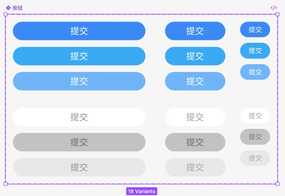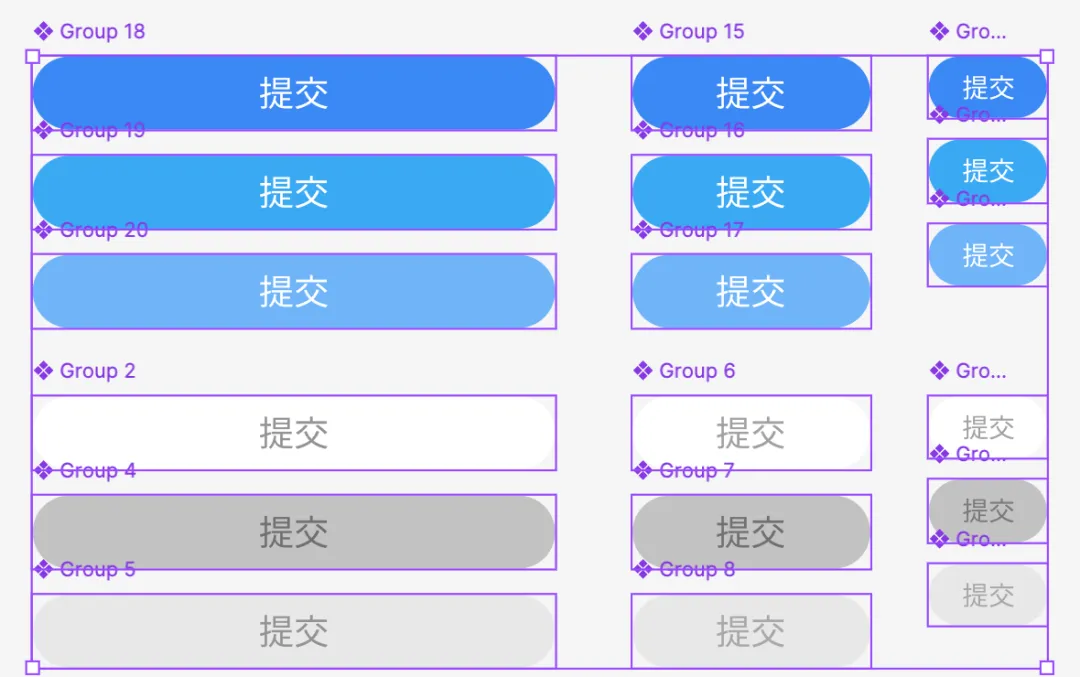 在做变体组件之前,把设计好的样式先编组(快捷键是Ctrl+G),然后在组件里面选择(Create multiple components)进行批量组件,就是把每一个组件变成单独的组件,然后在点击右边的按钮Combine as Variants这样组件变体就做好了。