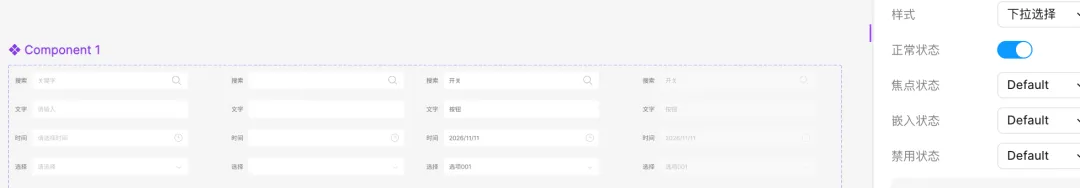 接下来做一个复杂一些的组件样式。先做好表单样式,同样每一个按钮编组再做批量组件,也就是每一个单独的组件。