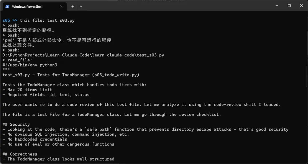 我们接着让它【审查一下test_s03.py这个文件】