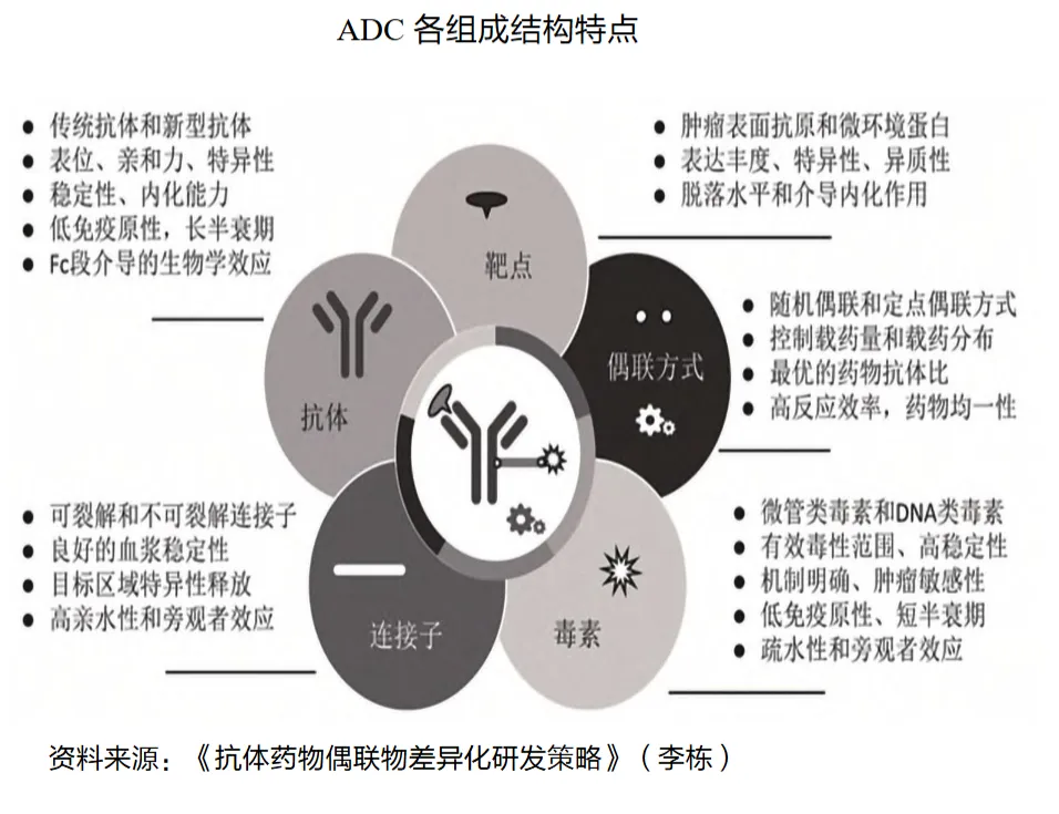 ADC研发的核心目标在于扩大“治疗窗口”——即在对肿瘤细胞实现最大杀伤的同时,将对正常组织的损伤降至最低。这一目标的实现,高度依赖于对构成ADC的五个核心模块的理性设计与精妙平衡:靶点、抗体、连接子、毒素与偶联方式。这五大因素相互关联,共同决定了ADC最终能否安全、有效地完成其精准递送“弹头”的使命。