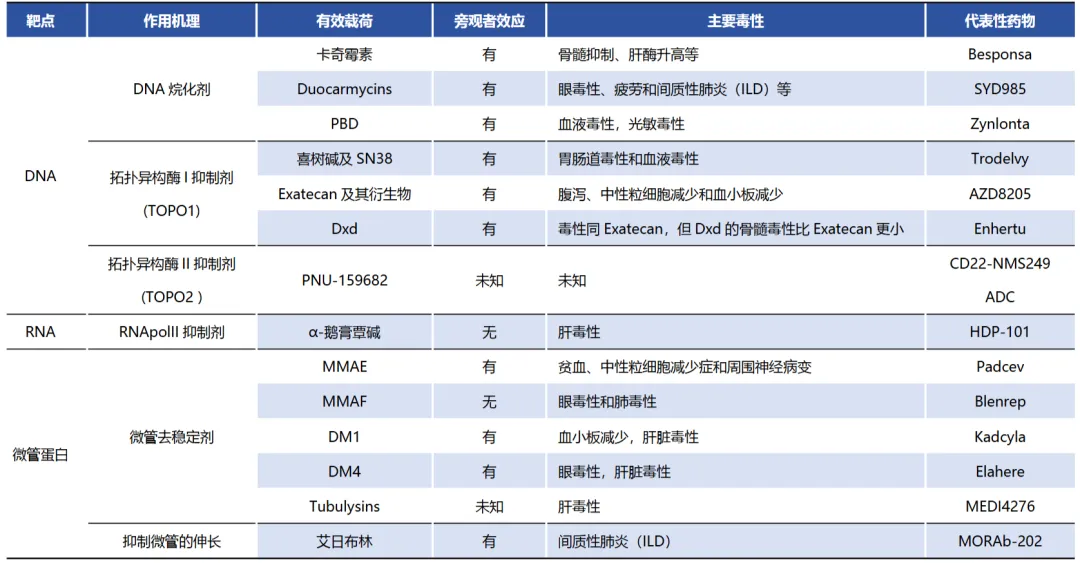 小分子毒素是直接杀伤肿瘤的“弹药”,其选择决定了 ADC 的效力和安全性特征。