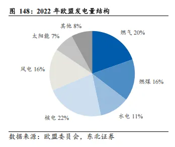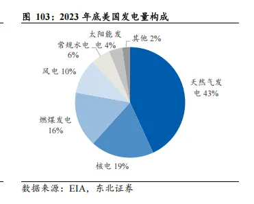 美国发电市场以火电、核电为主,气电发电量持续提升,煤电持续降低,气电占比43%、核电占比19%、煤电占比16%。