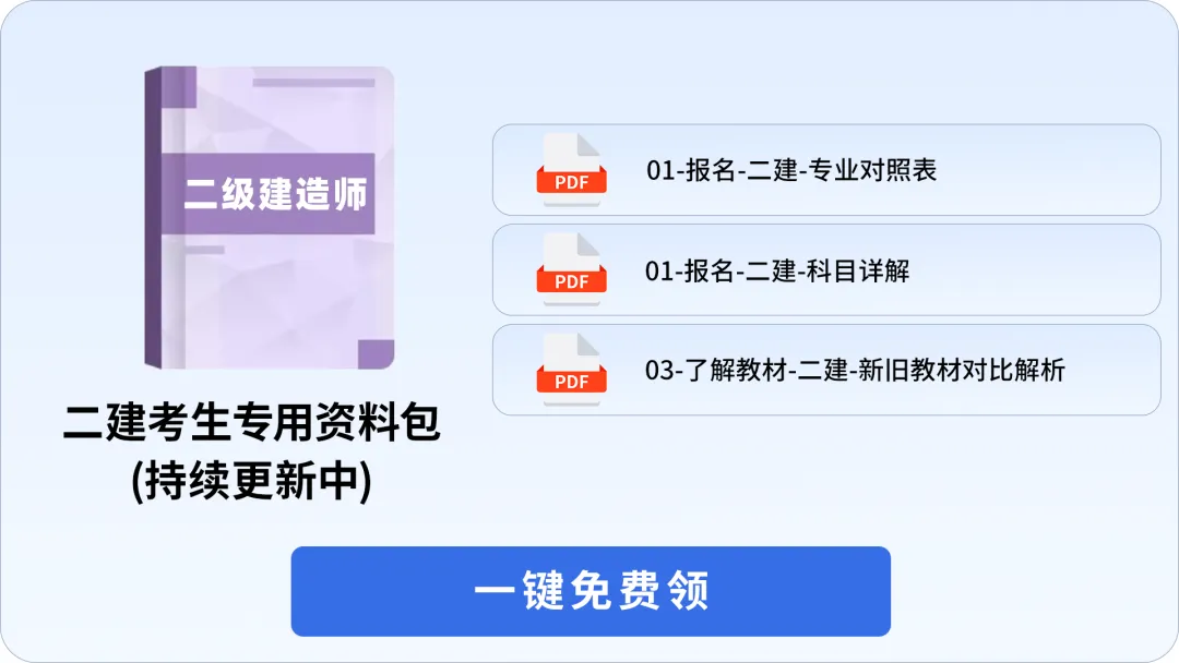 以上就是关于“干货免费分享!2026年二建学习资料:建筑实务总结性内容”的相关内容,希望可以帮助到各位。按钮,免费领取2026年二级建造师考试新版大纲教材变动、报考指南、学习计划、高频知识点、四色笔记、易混易错点及模拟试题、万人模考、历年真题解析等干货内容,助您无忧备考二级建造师考试。