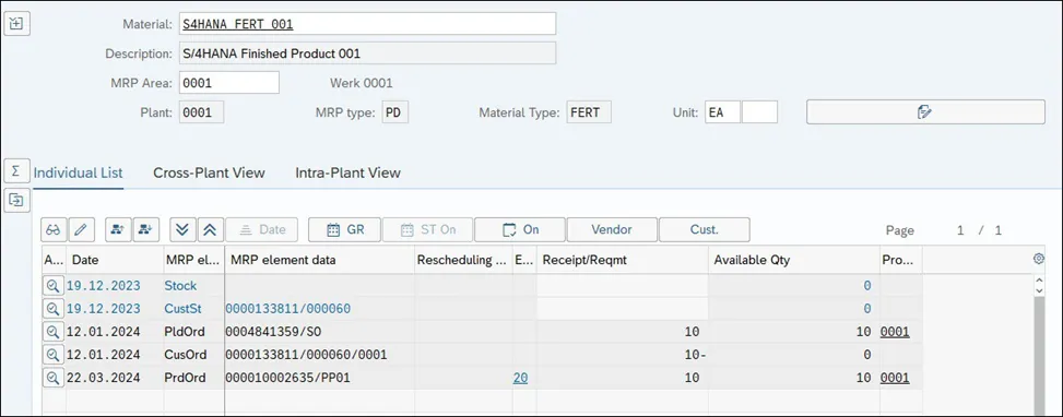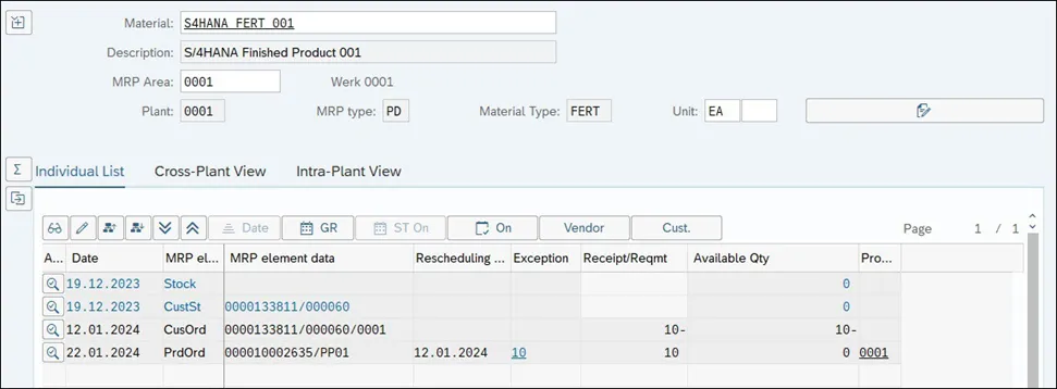 S4 HANA生产模块学习笔记-评估MRP结果(再计划检查)1