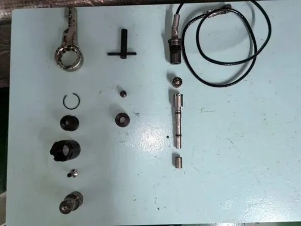 使用木棒等较软的工具从喷油器的下方轻轻向上敲打,便可顶出里面的推杆组件。