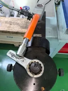 在用液压工具上紧针阀偶件锁紧螺帽的时候习惯用手扶着压紧扳手,若此时扳手崩开,可能会砸伤手指。